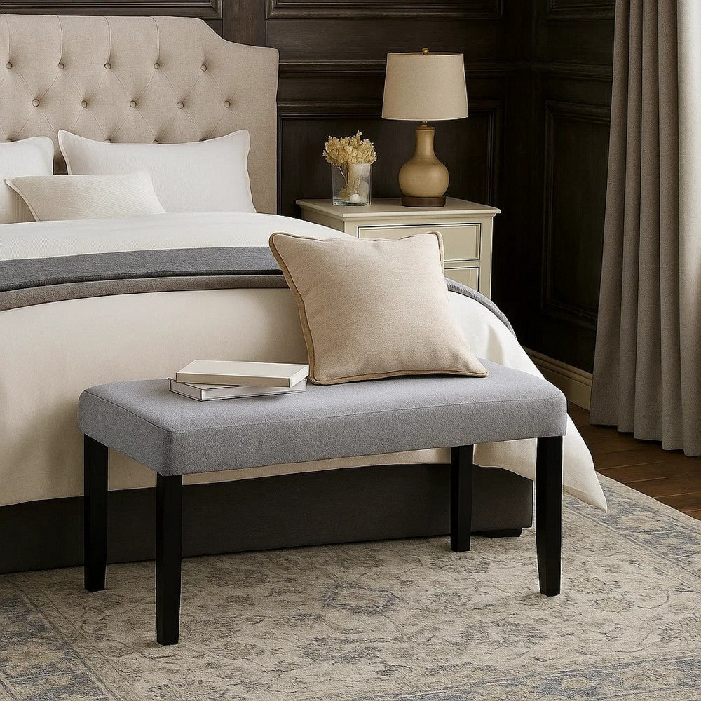 Arun Dining Bench, 41 Inch Charcoal Gray Fabric, Black Rubberwood - BM341036