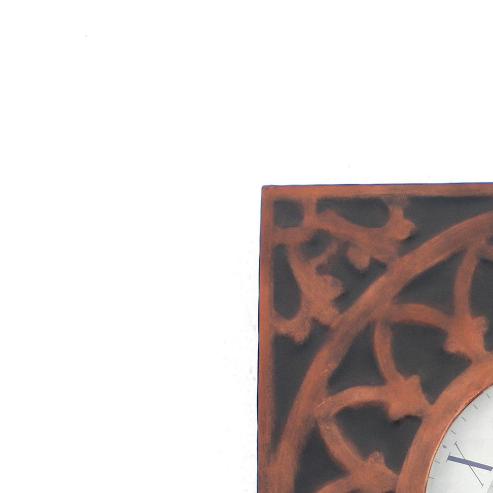 Keep track of right time and never lose a moment with the inclusion of this amazing wall clock. Constructed from metal, it showcases a square frame with baroque design in brown and black color enclosing a round clock. The clock features roman numerals and spade type hands for traditional look.