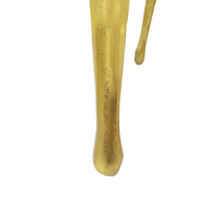 Make a bold artistic statement with our Capri side end table, where fluid form meets contemporary elegance. Handcast from premium aluminum cast, this sculptural masterpiece is finished in a luminous gold tone that reflects light beautifully, adding warmth and visual richness to any space. Its defining feature, a molten, drip-inspired base that evokes the appearance of metal caught mid-pour, results in a truly captivating, museum-worthy silhouette. Topping the piece is a removable round black tempered glass surface, offering a durable and refined platform for accent lighting, drinks, or decorative accessories. Perfect for modern, eclectic, glam, or gallery-style interiors that embrace artistic expression and bold design. Explore our Capri collection for more matching items.