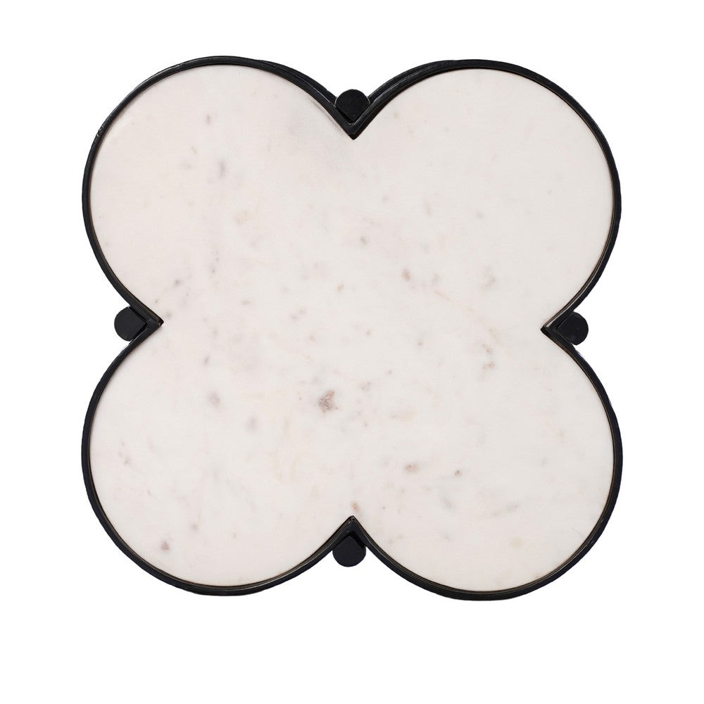 Chloe Side End Table, White Genuine Marble Clover Shape Top With Black Iron Frame - UPT-276372