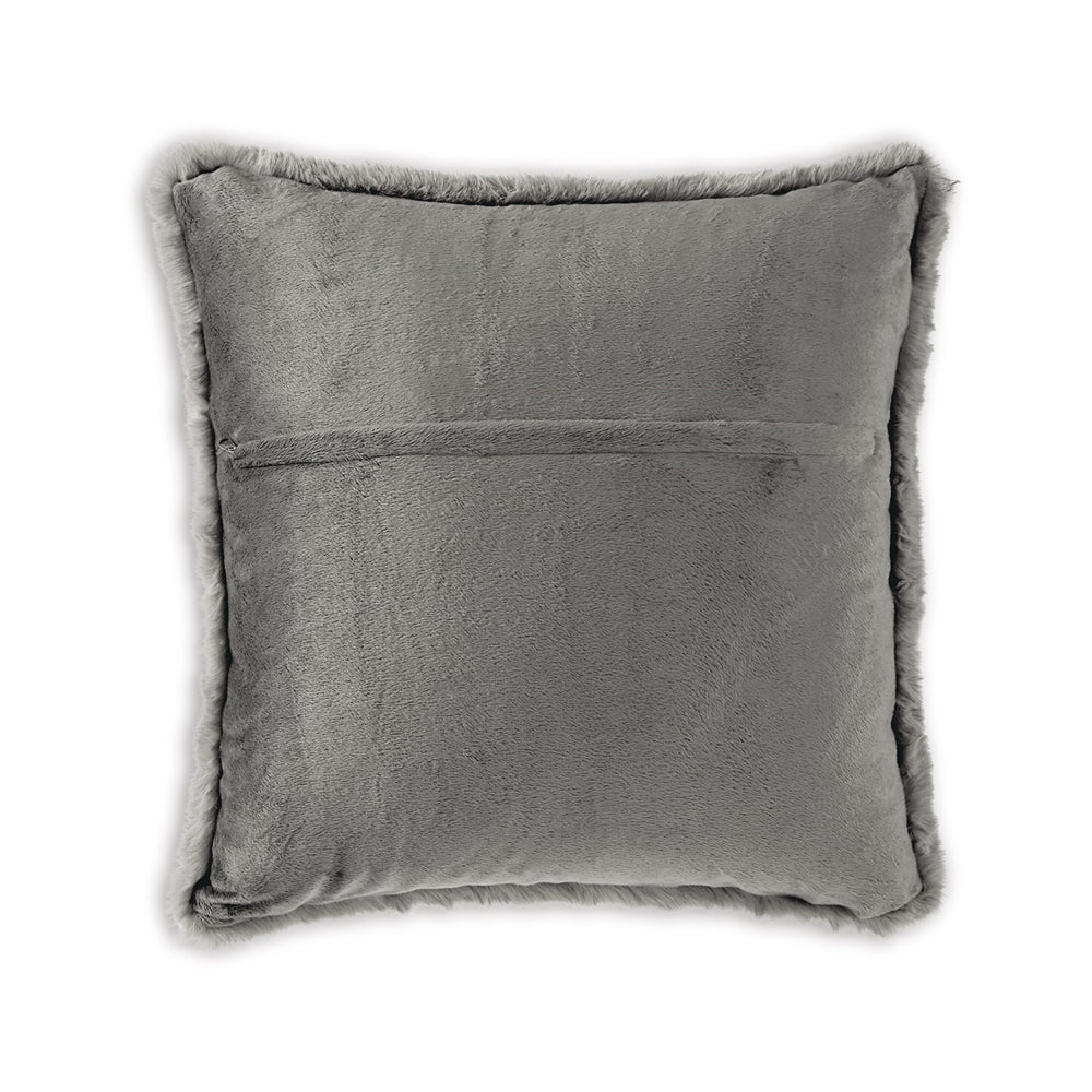 Difi Throw Pillow Set of 4, 20 Inch, Faux Rabbit Fur Face, Gray Polyester - BM318637