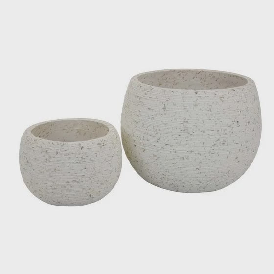 Line 10 Inch Planter Set of 2, Round Shaped Resin Body, Textured White - BM309740