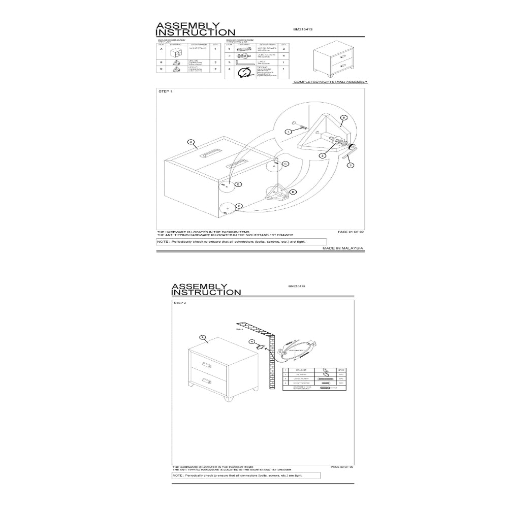 Enhance the storage space of your bedroom with the inclusion of this generous Nightstand. Constructed from solid wood, it features 2 drawers showcasing wooden grain details with metal handles for access. It is supported by bracket legs, providing stability and durability.