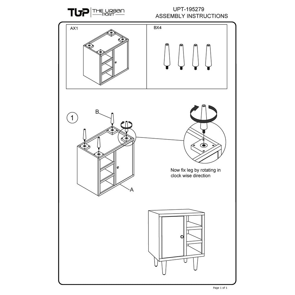 - Incorporating floor protectors, it features 3 open cubbies and 1 door which reveals 2 compartments inside.