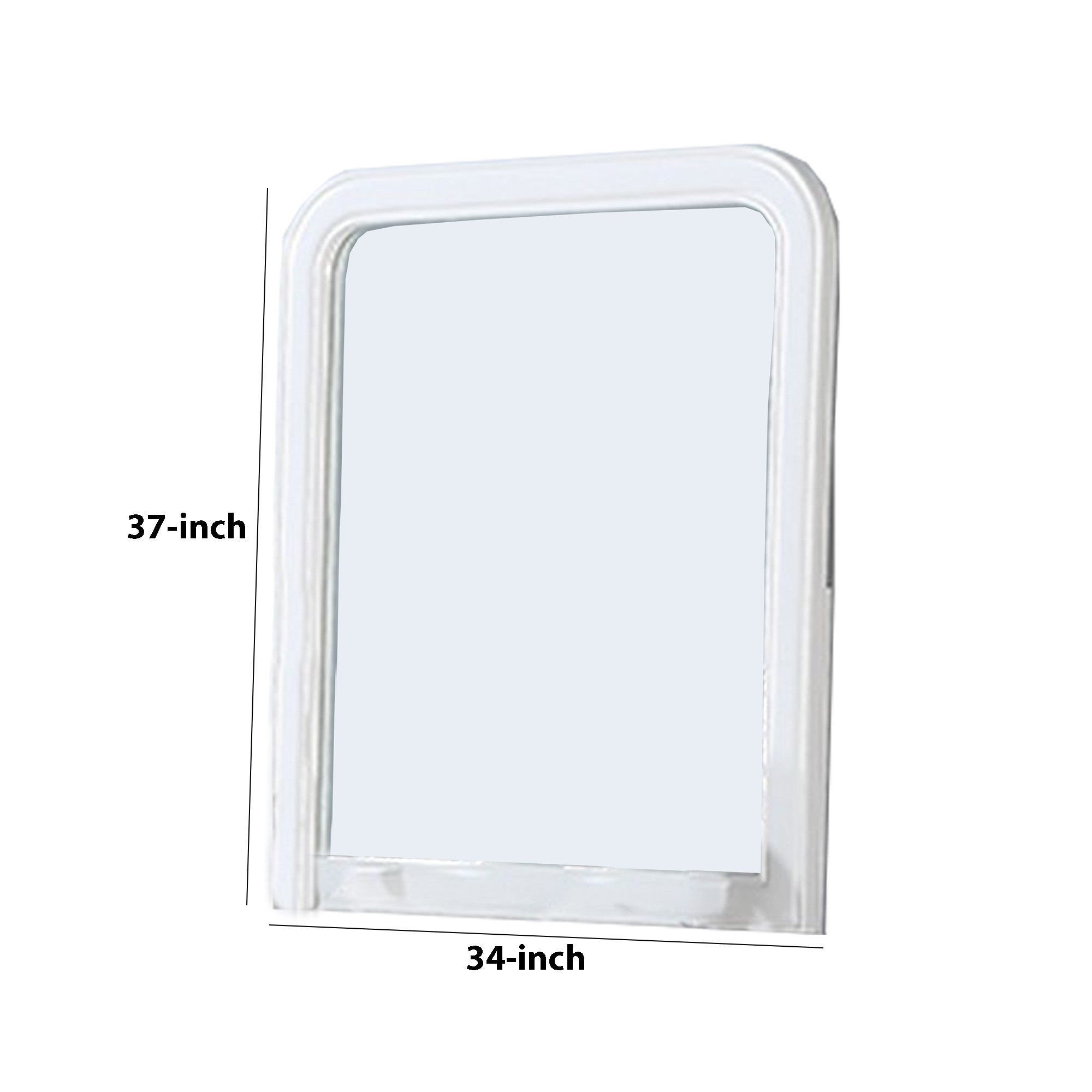 37 Inches Wooden Mirror with Curved Edges, White - BM232117