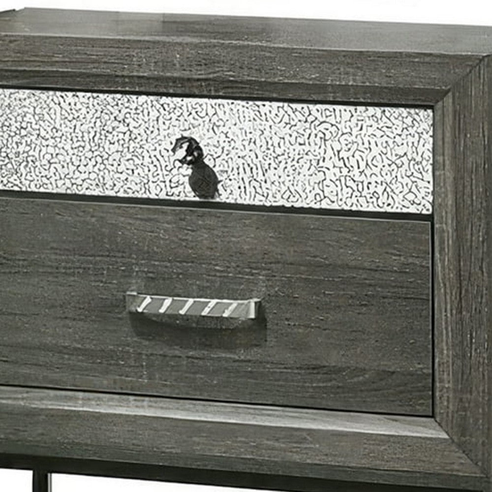 Lito 25 Inch Nightstand, 1 Drawer and Jewelry Tray, Glam Silver, Gray - BM339405