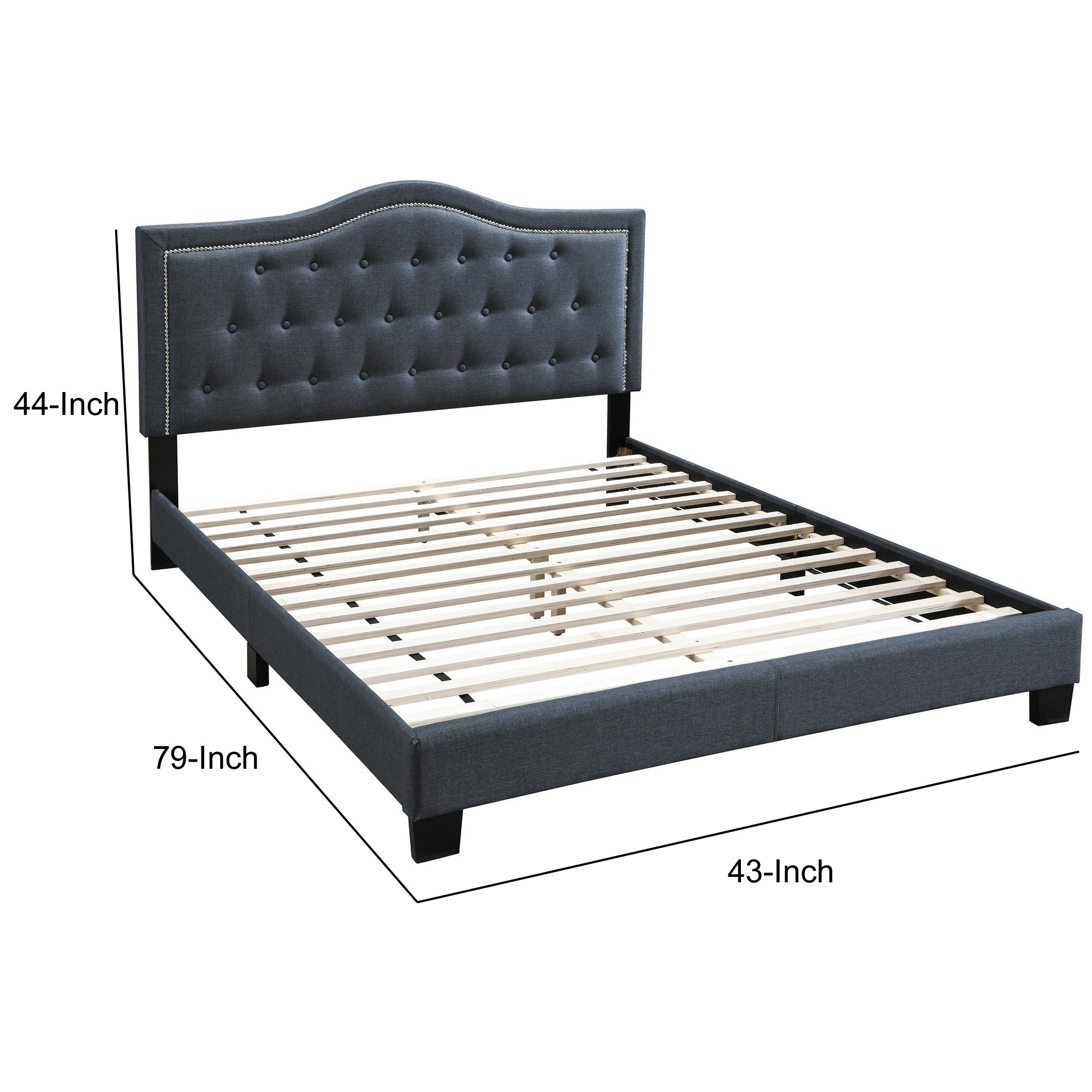 Bring sophistication and comfort to your bedroom with this exquisite Twin Bed. The nailhead trim, button tufted details, and a camelback headboard add to its visual appeal, while the charcoal gray burlap fabric upholstery exudes elegance. It boasts a sturdy construction of poplar wood, MDF, and particleboard for long lasting durability.
