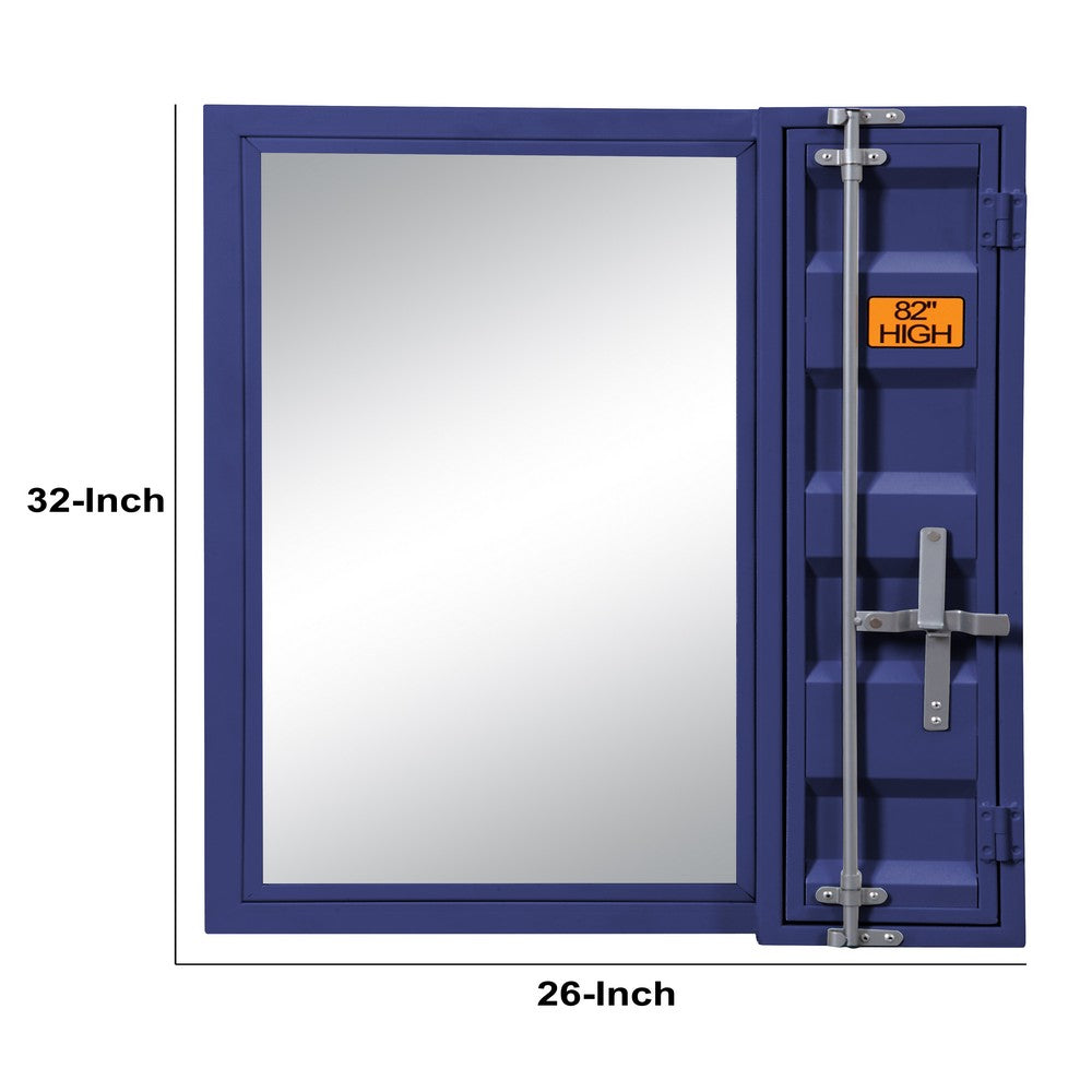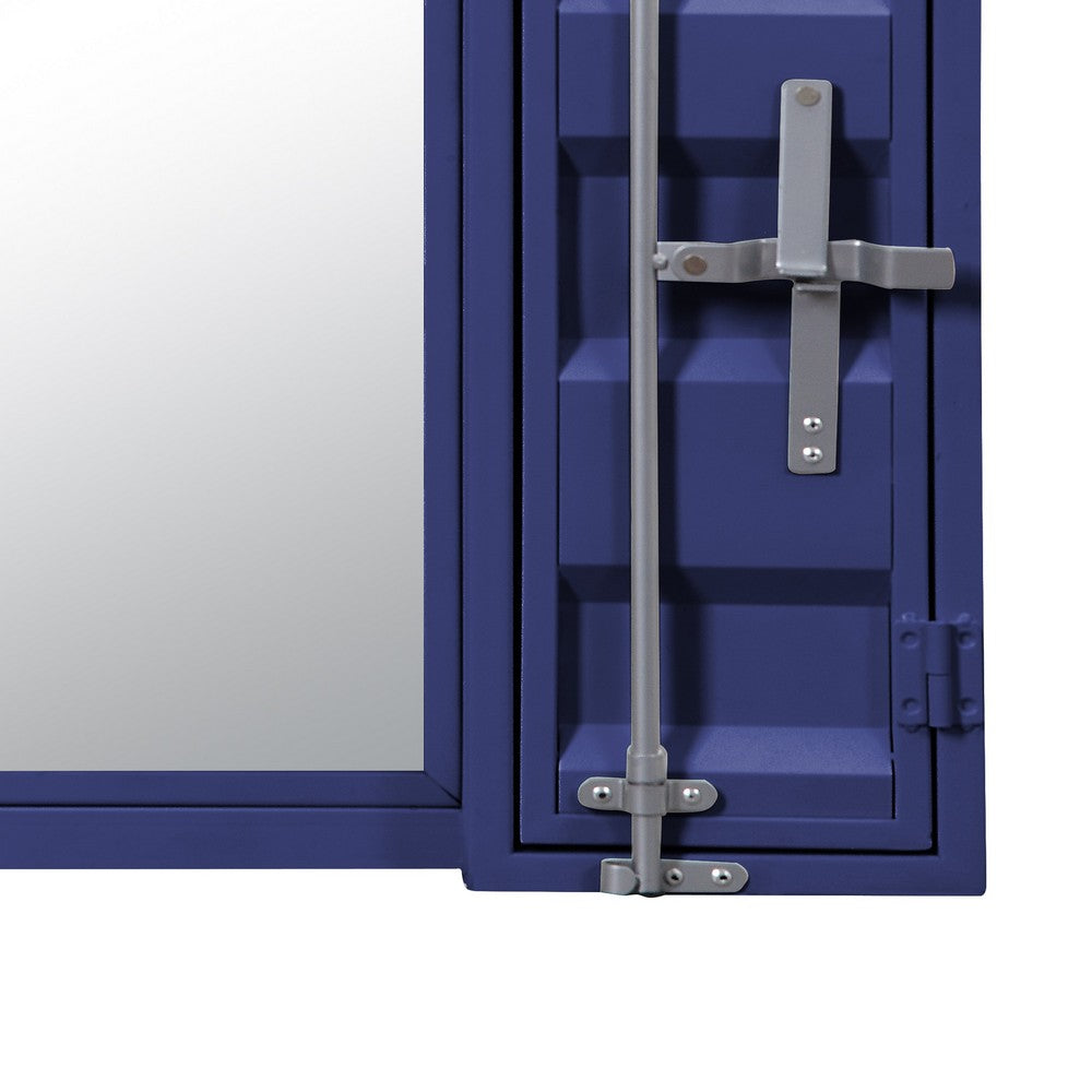 Industrial Style Metal Vanity Mirror with Recessed Door Front, Blue - BM204623