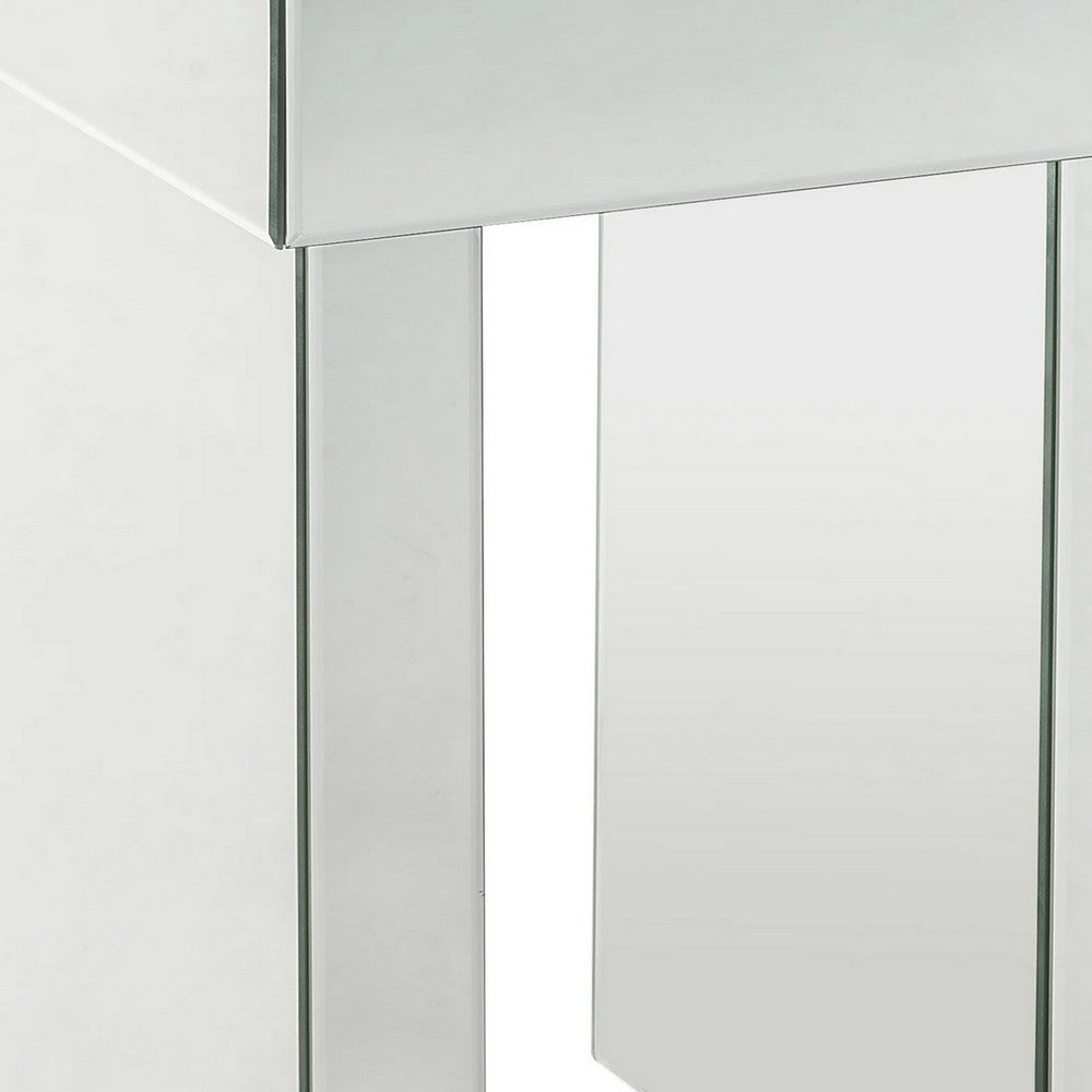 Noe 24 Inch Square End Accent Table, Mirrored, Faux Diamond Inlay, Silver - BM280308