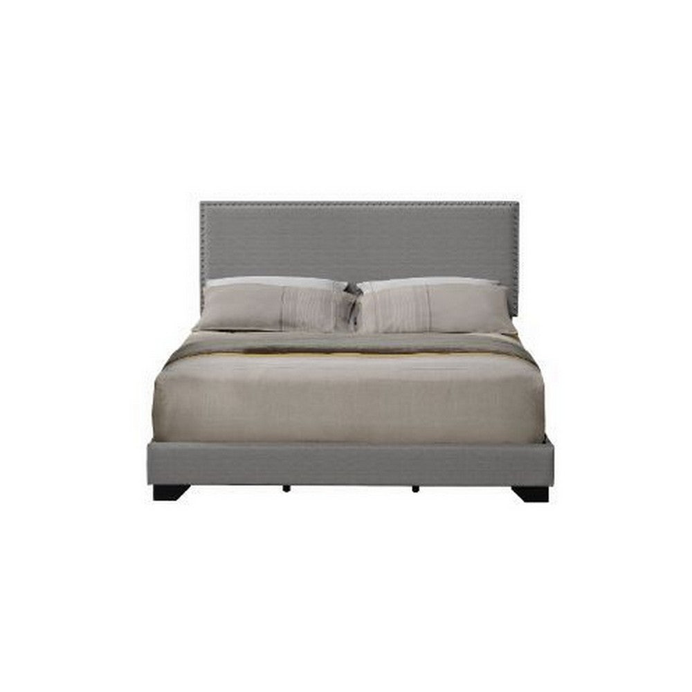 Queen Size Bed with Fabric Upholstery and Nailhead Accent, Gray - BM266522
