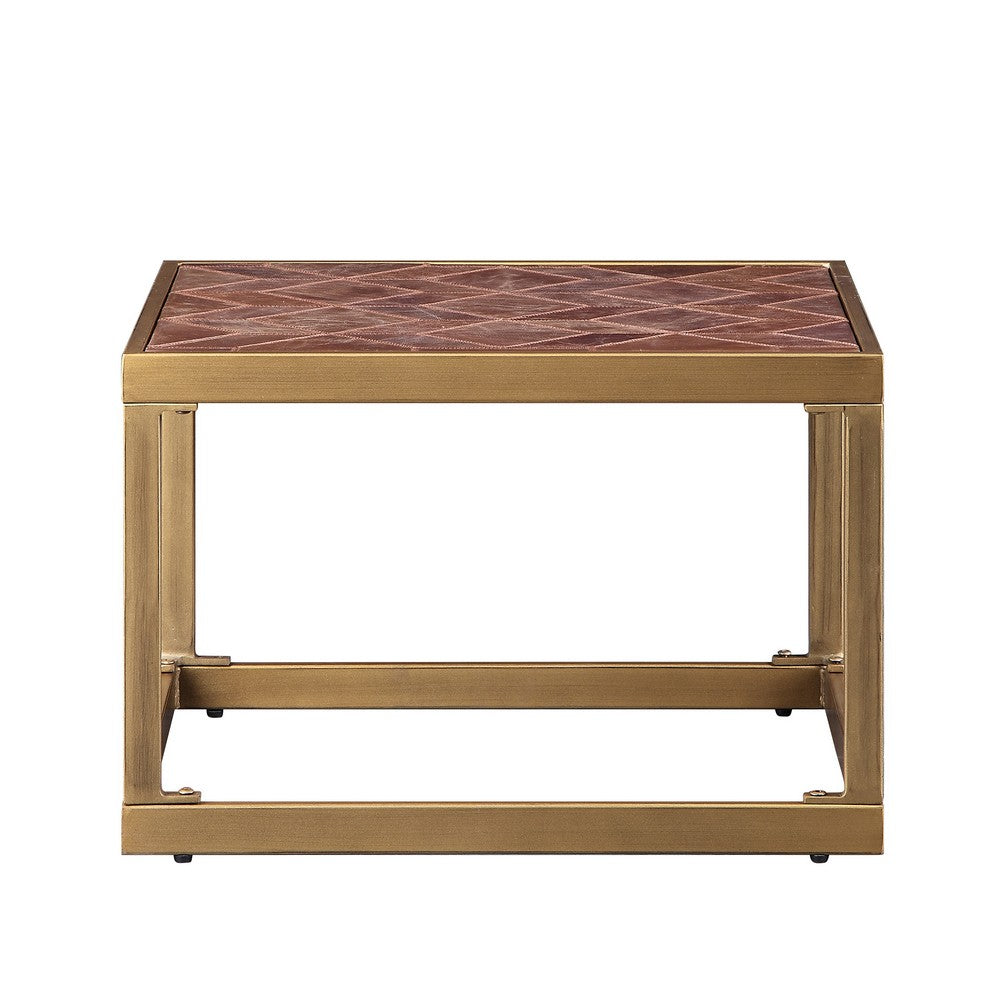 Update your living room setting with the inclusion of this transitional style end table. Made sturdily from metal, it features a grain leather top which rests on an open cuboid base, embedded with floor protectors to prevent abrasion of your floor. Characterized in a gold finish makes it easy to blend in with your existing furniture. It offers great usage when placed next to your sofa or chair, enlivening your home decor.