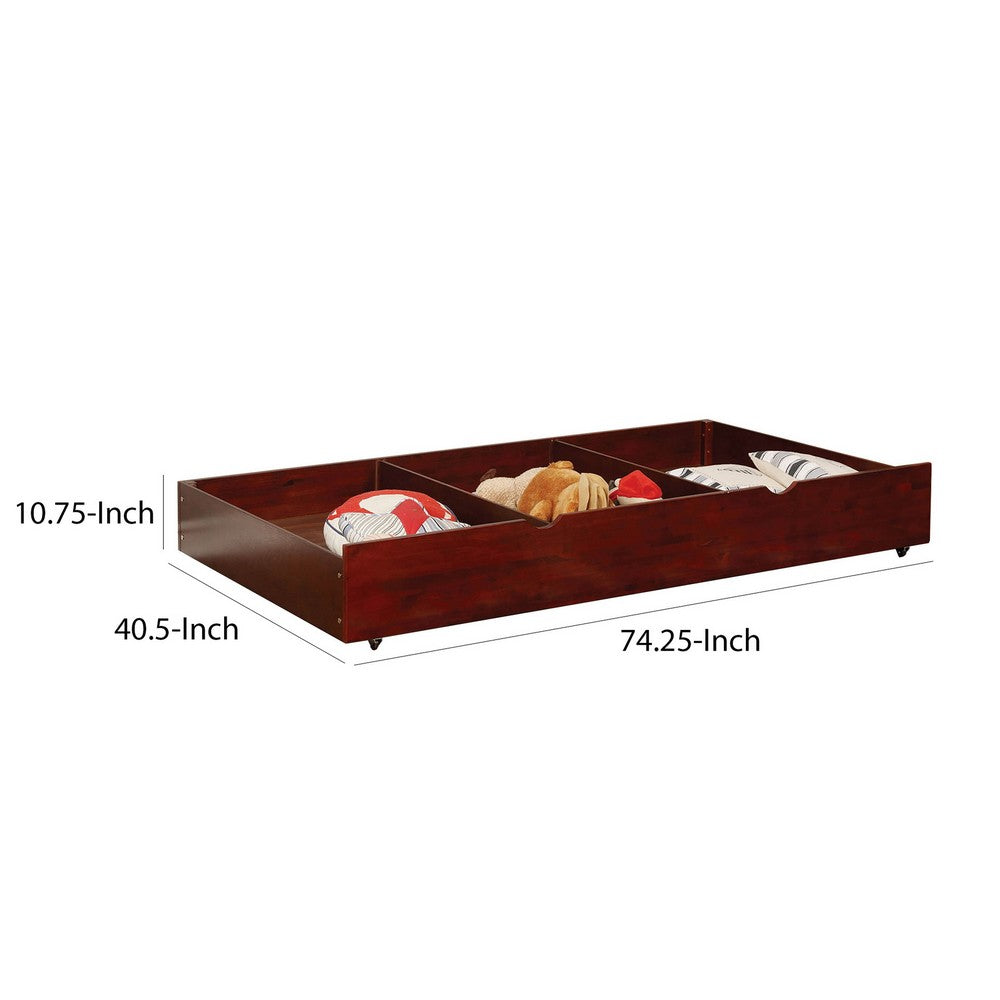 Transitional Style Wooden Trundle With Large Storage Drawer, Warm Cherry Brown - FOA-CM-TR453-CH