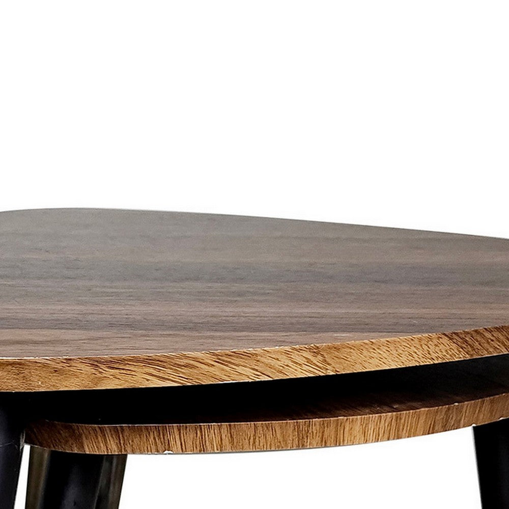 Clovia Nesting Table, Set of 2, Triangular Brown Solid Wood, Black Metal - BM319891