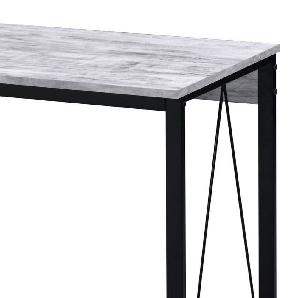 Writing Desk with V Shaped Accent and Distressed Look, White - BM250307