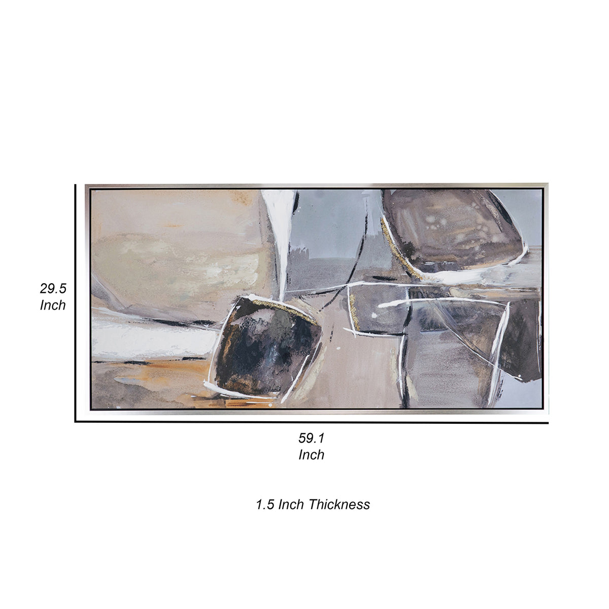 30 x 59 Abstract Oil Painting, Rectanglular Poly Canvas, Wood, Beige, Gray - BM312740