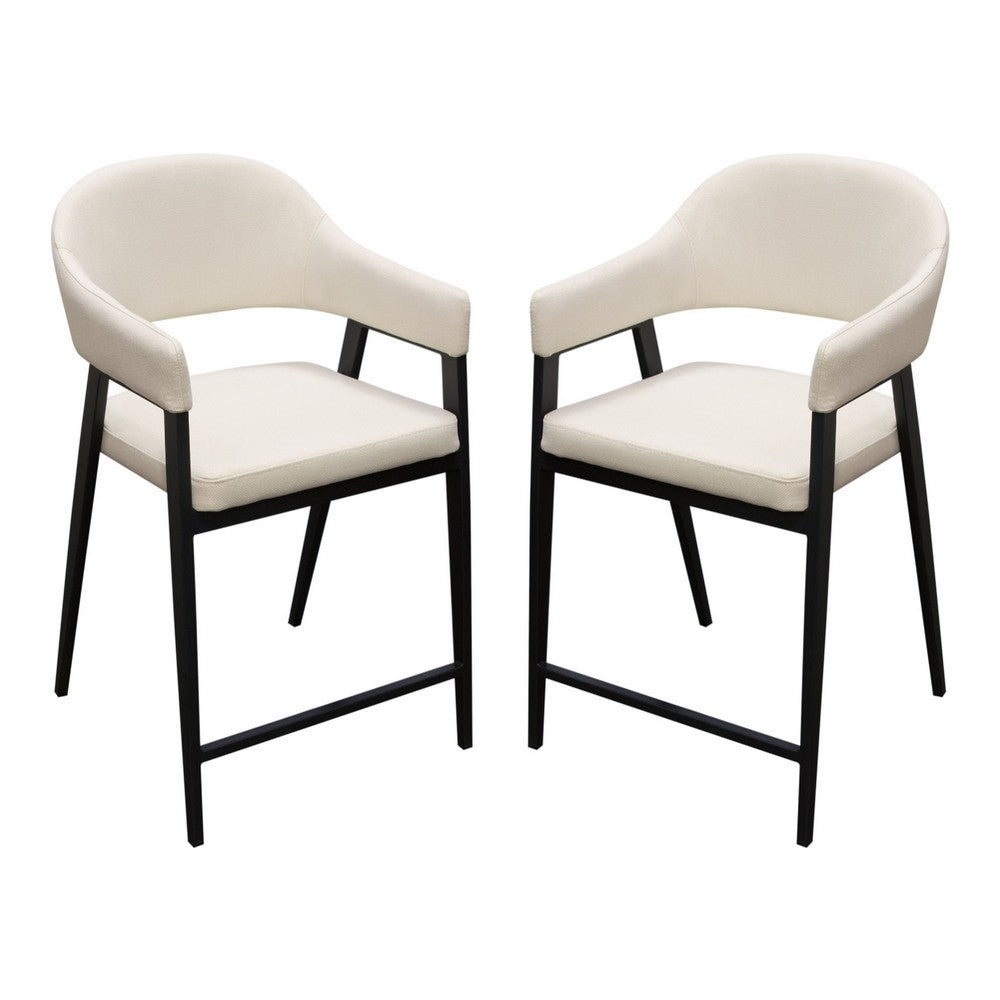 Arie Counter Height Chair Set of 2, Cream White Polyester, Black Legs -BM338805