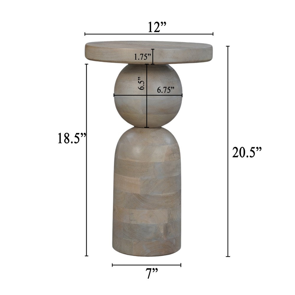 Elevate your space with this beautifully handcrafted side end table, made from premium-grade mango wood for lasting strength and exceptional quality. The table features a turned pedestal base, adding both craftsmanship and elegance to its unique design. The beige accented natural brown finish not only enhances its sleek, sophisticated appearance, but also makes it a versatile addition to any room. With its sleek, structural silhouette, this side end table is designed to fit perfectly into narrow spaces, corners, or cozy rooms that need an aesthetic anchor piece. Whether placed beside a sofa, in an entryway, or next to a bed, it adds a touch of elegance and utility without overwhelming the space. Additionally, rubber felt pads are included to help protect your floors from scratches. For a variety of color options to suit your unique style, be sure to check out our Tia collection.
