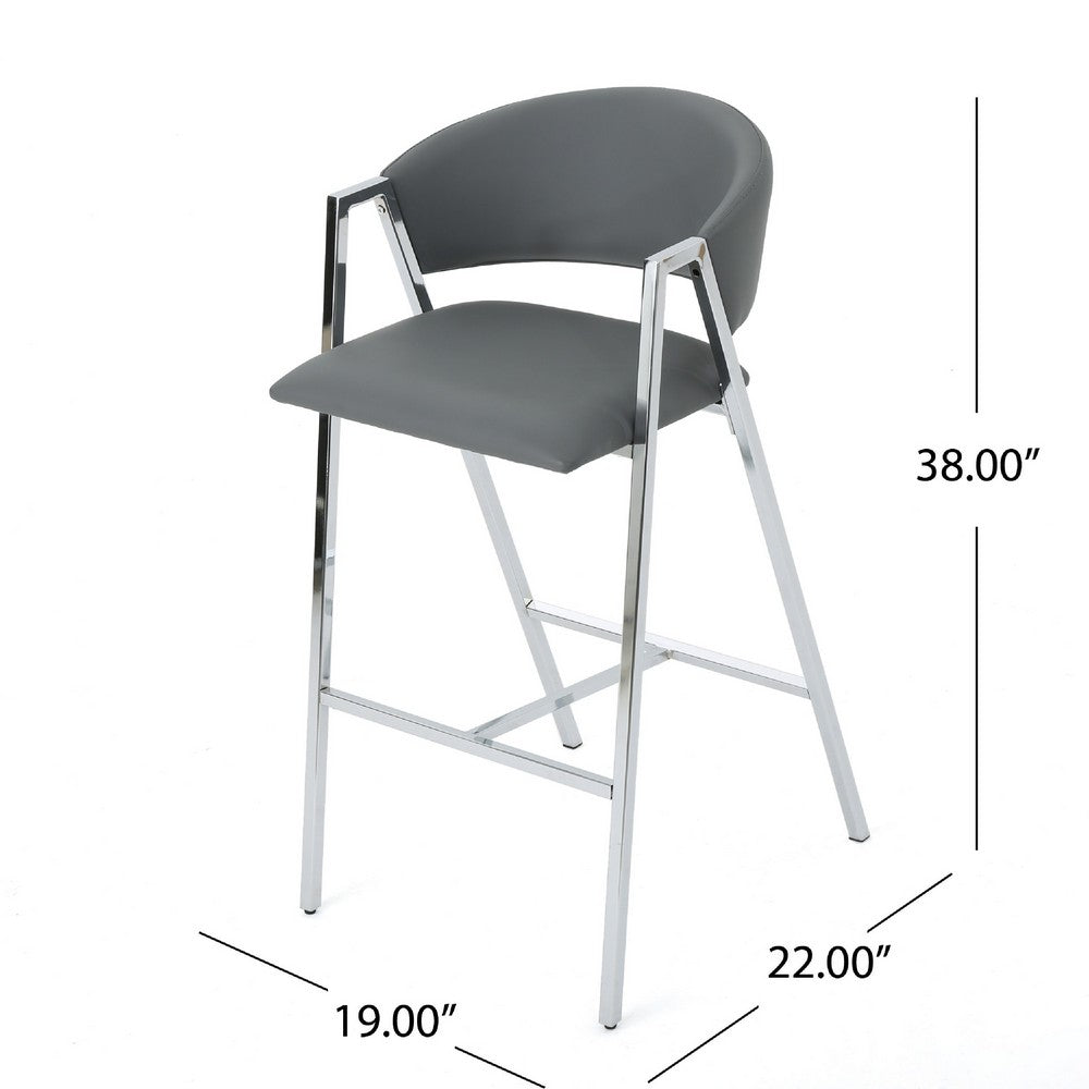 Zoy Barstool Chair Set of 2, Gray Faux Leather Padded, Chrome Iron -BM335648