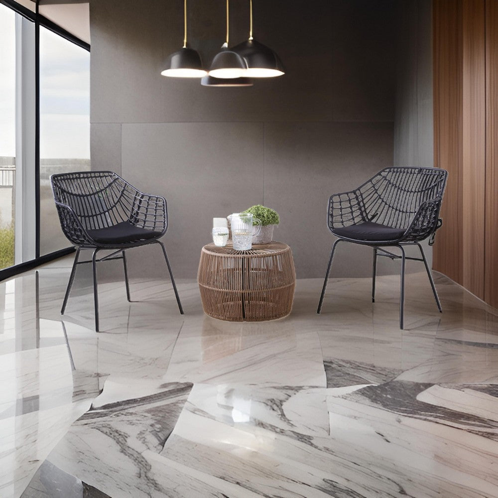 Zyan 3pc Outdoor Set, 2 Accent Chairs with Table, Black Steel, Brown Rattan - BM319859