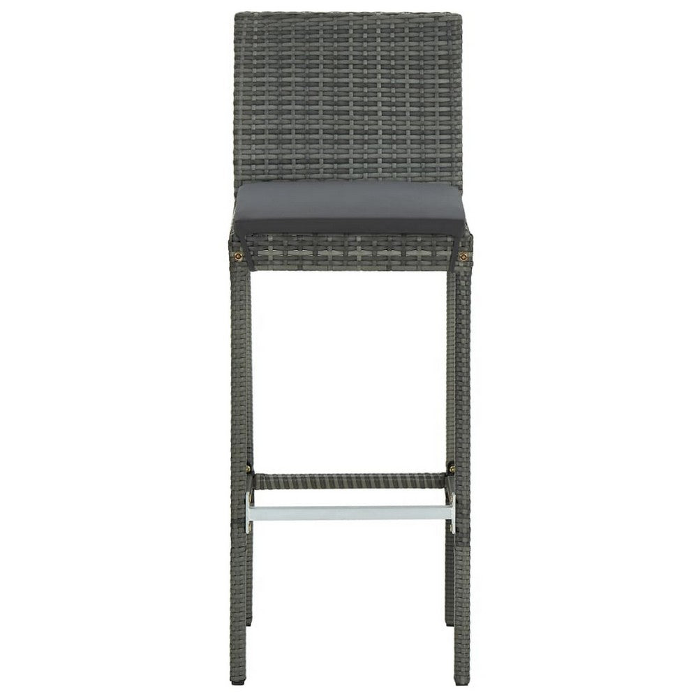 Elevate your outdoor space with this stylish set of four barstool chairs. Crafted with a sturdy metal frame wrapped in gray woven poly rattan, these chairs feature an ergonomic design for comfort during long hours of sitting. The soft, durable gray polyester cushions provide added comfort, while UV-resistant materials protect against fading and wear.
