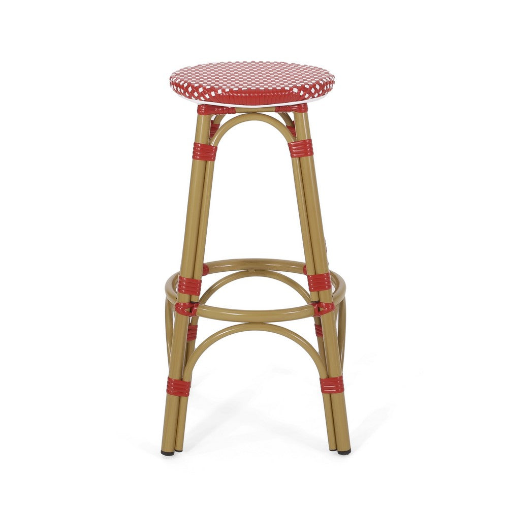 Outdoor Barstool Set of 2, Red and White Wicker Seat, Brown Aluminum -BM335768