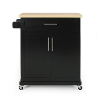 Shine Rolling Kitchen island Bar Cart w Cabinet, Black, Brown Wood -BM325980