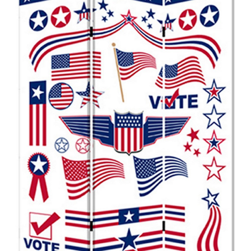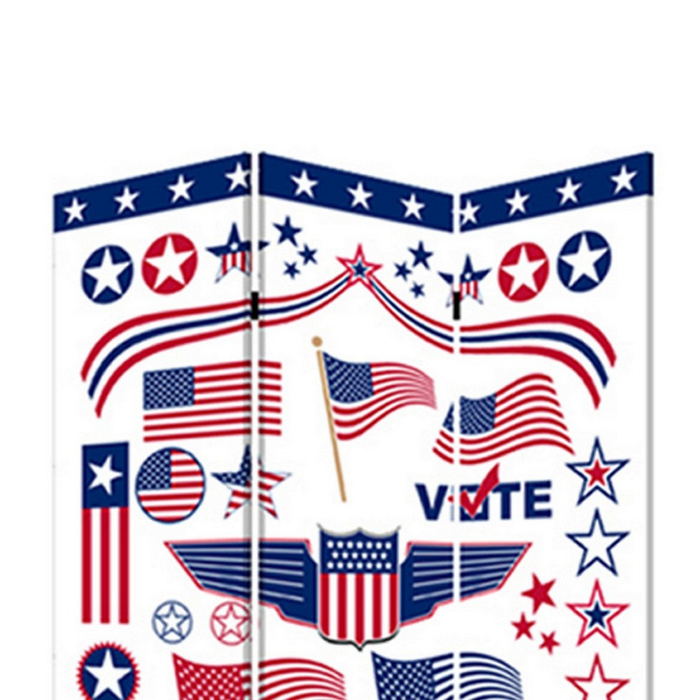 3 Panel American Flag Print Foldable Room Divider, Multicolor - BM26564