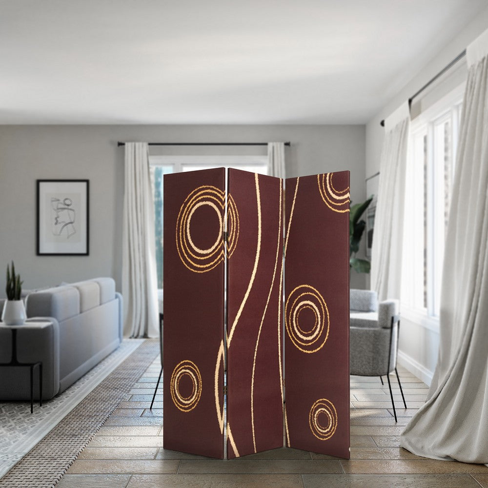 Complement your living space with the addition of this room divider. Made on a wooden frame, it comes with 3 canvas printed panels that can be folded when not in use to save space. The lightweight and easy to move room divider incorporates a ring pattern that accentuates its design.
