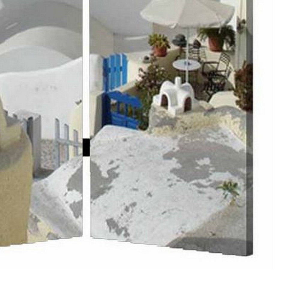Bring the gorgeous architecture and soaring skyline of Greece right into your home with this beautifully made and designed folding screen and room divider. You can not only stake out a place of privacy and function anywhere in your home at a moments notice, but you can do it in eye catching style with this deeply distinct modern accoutrement.