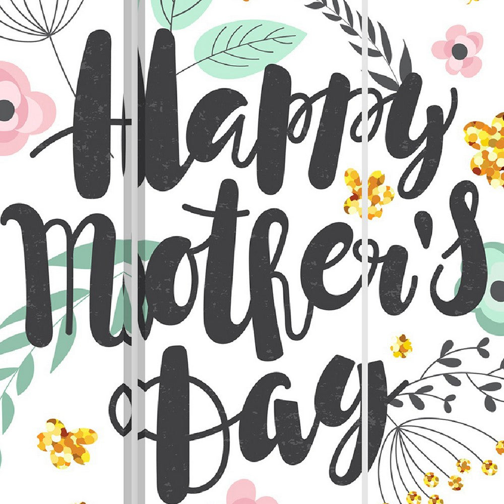 Create a convenient private space whenever you wish with this three panel foldable canvas screen room divider with a fun Happy Mothers Day graphic on it that is adorned with colorful flowers and a gentle reminder of the lady who brought us into the world. This goes well with a variety of decor and is easy to fold, expand, and store.
