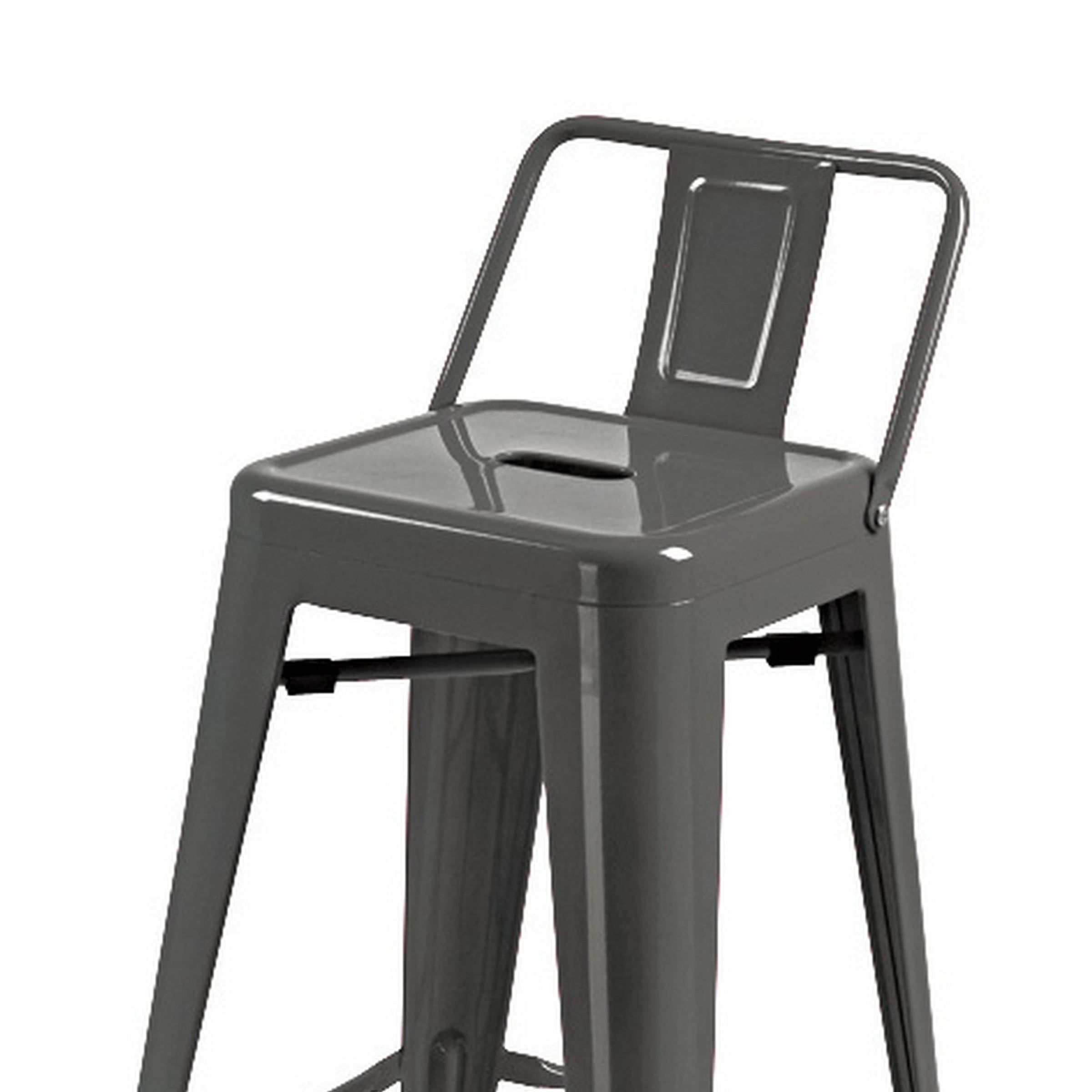 Elevate your bar area with our set of four modern industrial inspired Giri barstool chairs. This metal barstool is expertly constructed with a sleek tapered leg design and a stylish gray finish. The low backrest enhances comfort, while the thoughtful addition of a footrest provides additional support. Check out our Giri collection for more color options.