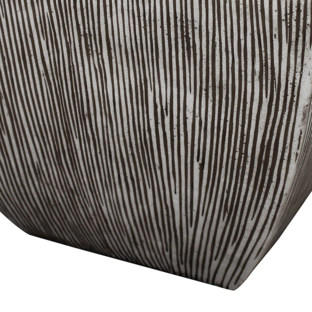 Hand Made Square Flower pot with Ribbed Design, White, Set of 3 - BM26609