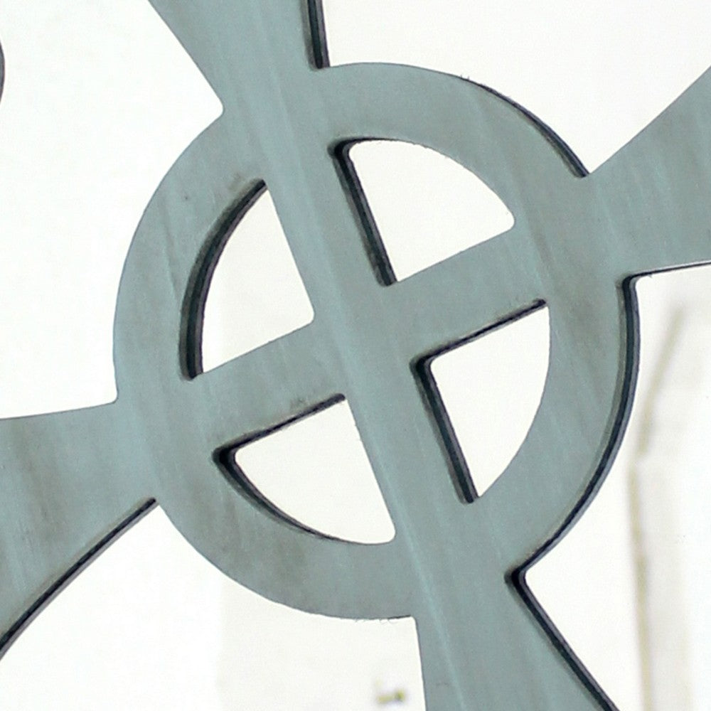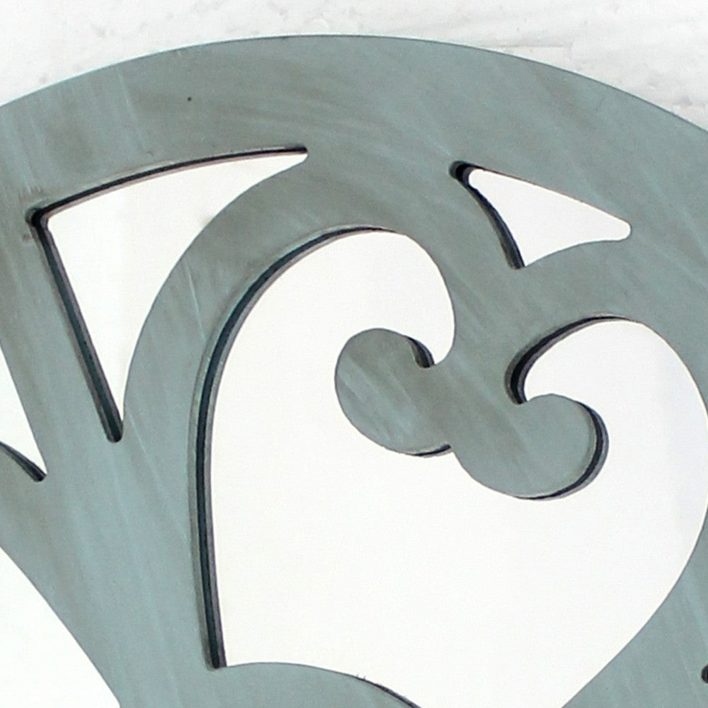 Wooden Round Wall Decor with Floral Pattern, Distressed Blue and Silver - BM211077