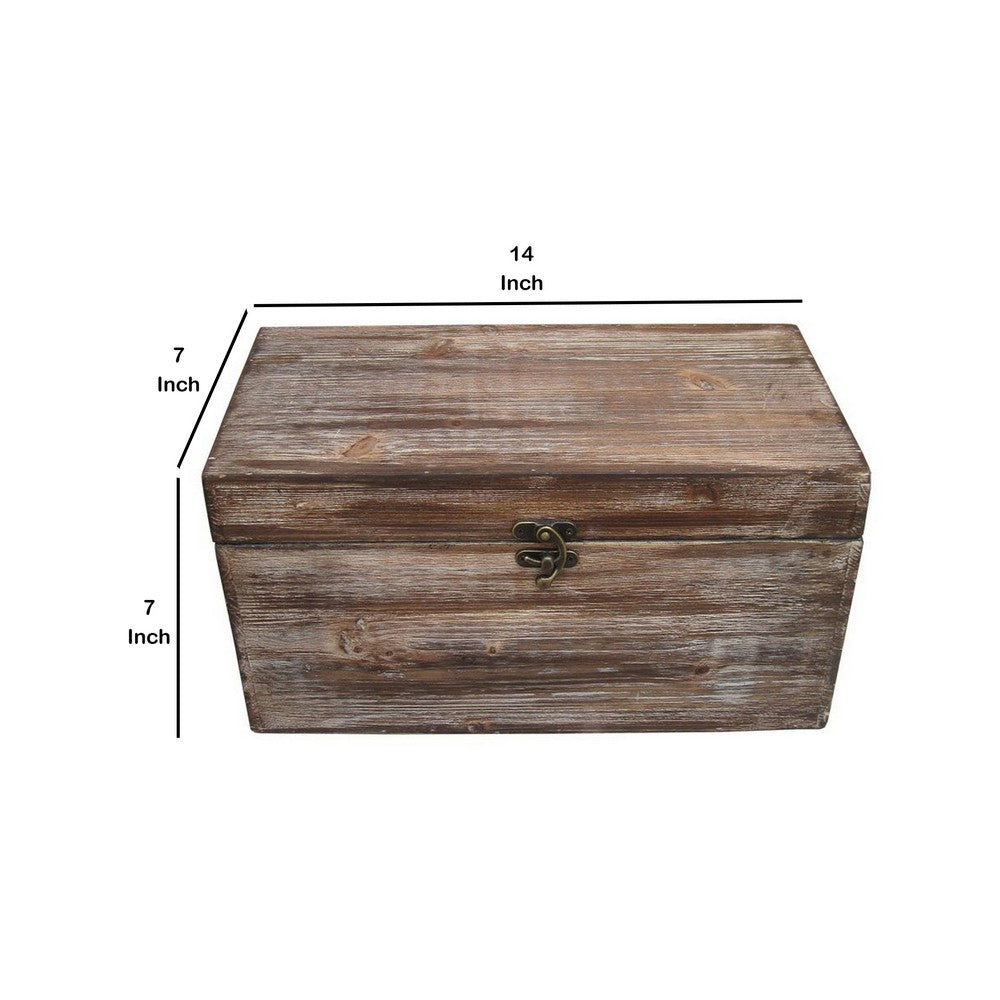 Add a rustic charm to your home decor with this Storage Box, made up of wood in a brown finish and features antique rustic metal accents. Showcasing rough hewn saw texture details, it comes lidded top with metal swing latch clasp lock where you can store all your jewelries, or other essential small items.