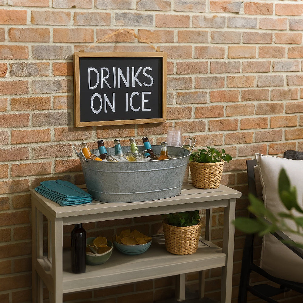 Add a farmhouse appeal to your indoor or outdoor space with the inclusion of this classic design tub, sturdily constructed from steel with a galvanized silver finish that makes it corrosion free and hence can be for the indoor and outdoor settings. Designed in an oval shape, this tub features a textured surface, rolled edges, and embossed lines that complement its overall look while the 2 sleek side handles provide an easy grip and makes it easy to relocate. Fill it with ice for chilling beverages in the summer or use it to hold firewood during the winter. Drainage holes should be drilled for direct planting.