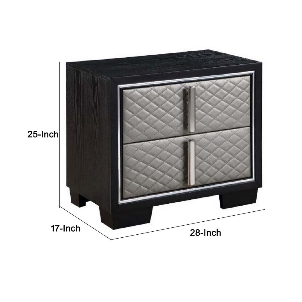 Fiz 28 Inch Modern Nightstand, Quilted Faux Leather Front, Silver, Black - BM296867