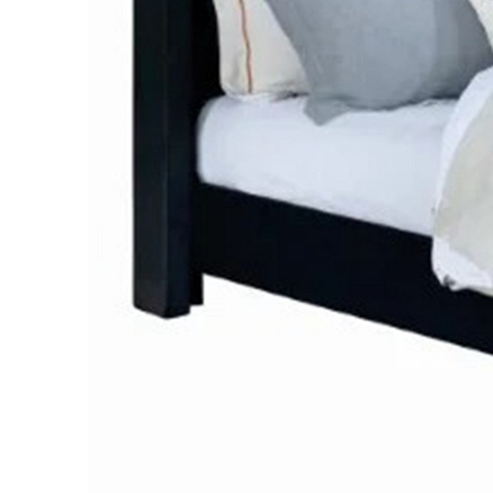 Hiu Queen Size Bed, Wingback Headboard in Black Velvet Like Upholstery - BM342419