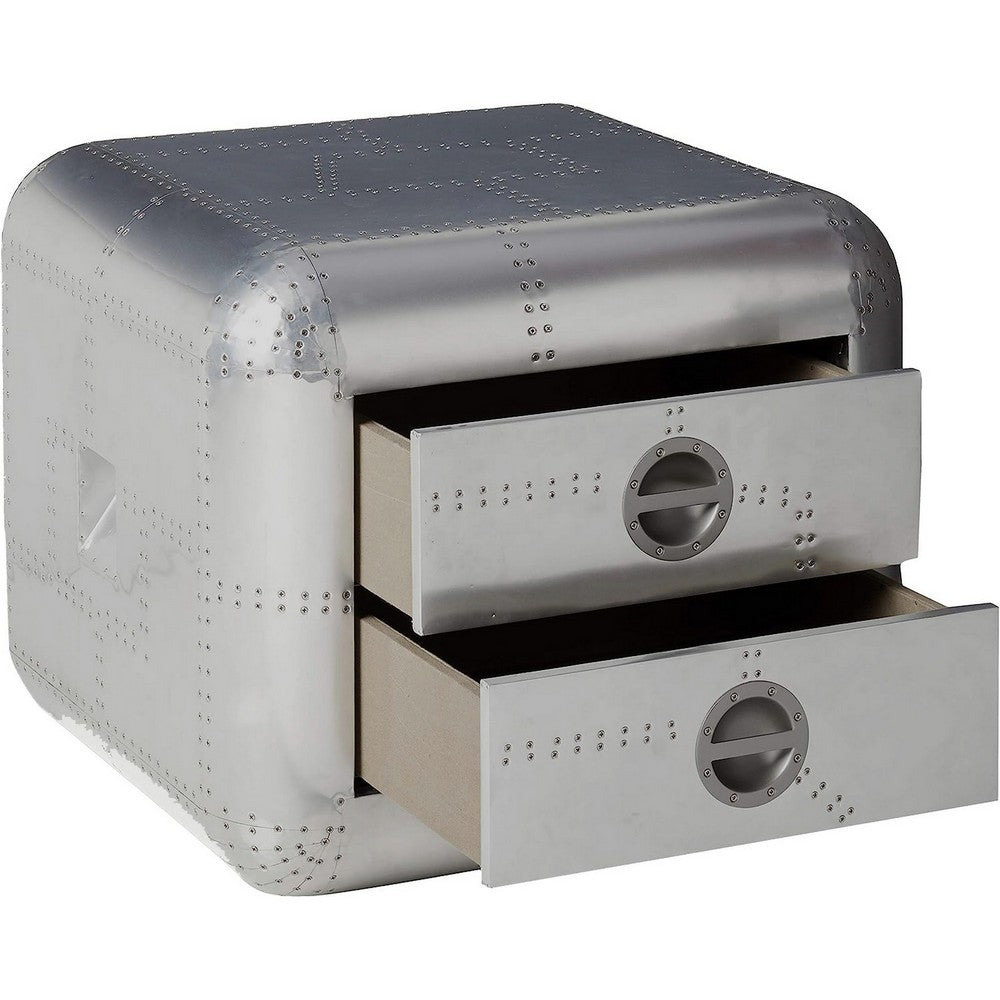 This end table features incredible design with curved lines, combining with aluminum and leather together to bring you a vintage sensation in the living room. Characterized by shelter arms and retro brown top grain leather, wrapped with aluminum panel for most of the sofa set, our Brancaster is absolutely an eye-catching decoration in your home. Modern and comfortable is your best choice. It will not be monotonous in your living room.