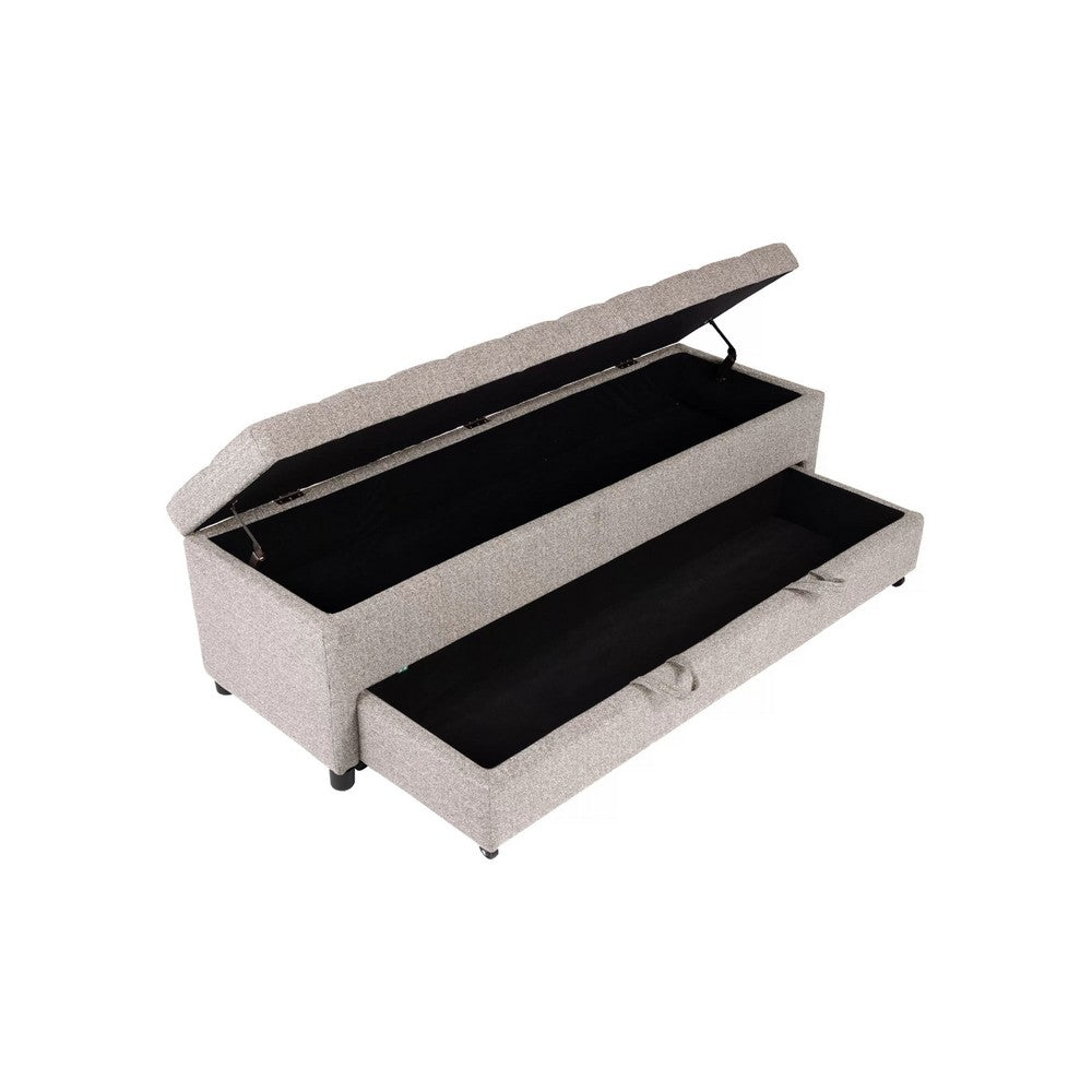 Kenny Ottoman, Underseat Drawer, Beige Button Tufted Boucle, 60 Inch - BM341053