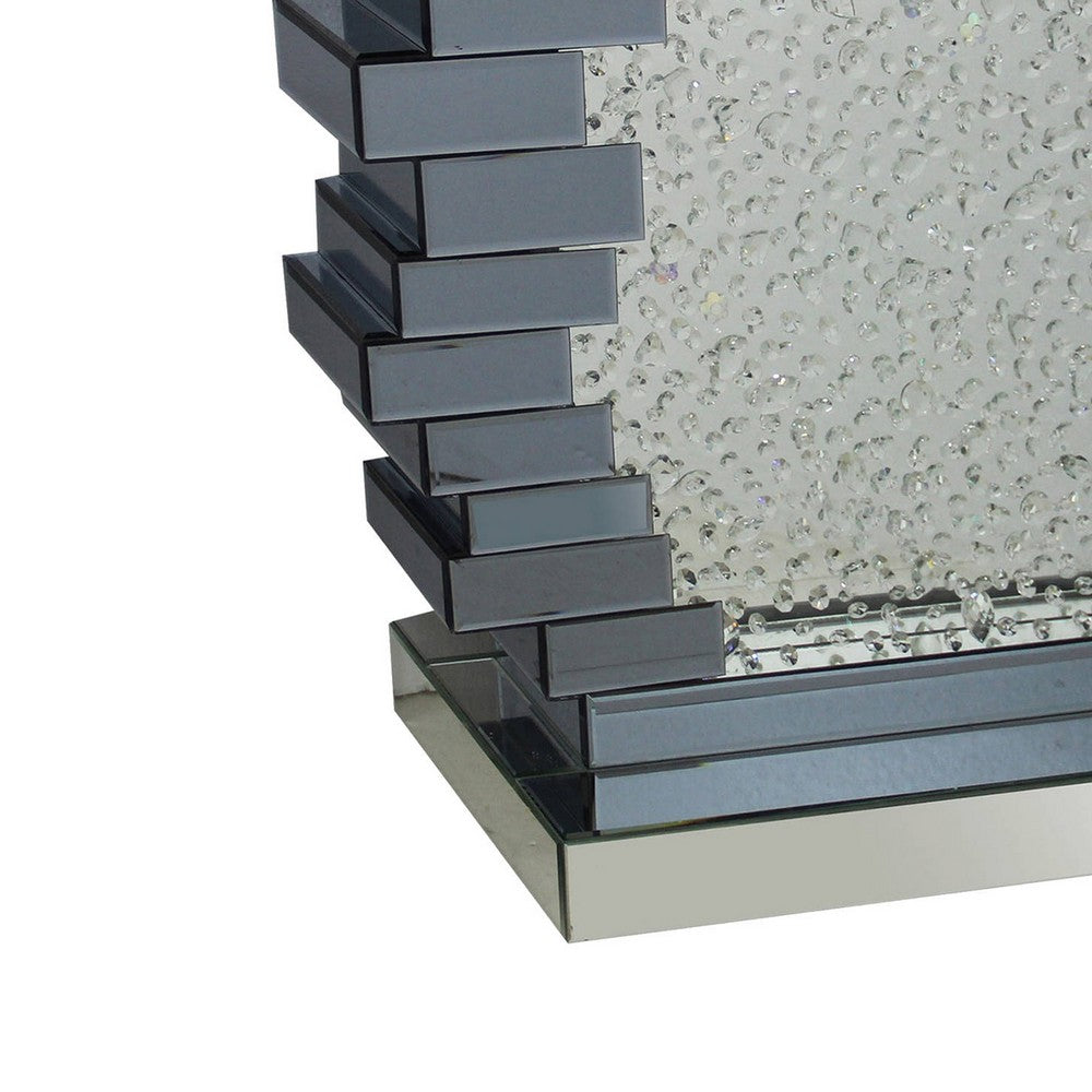 - The design of this table features black mirror bricks and a panel studded with glass crystals.