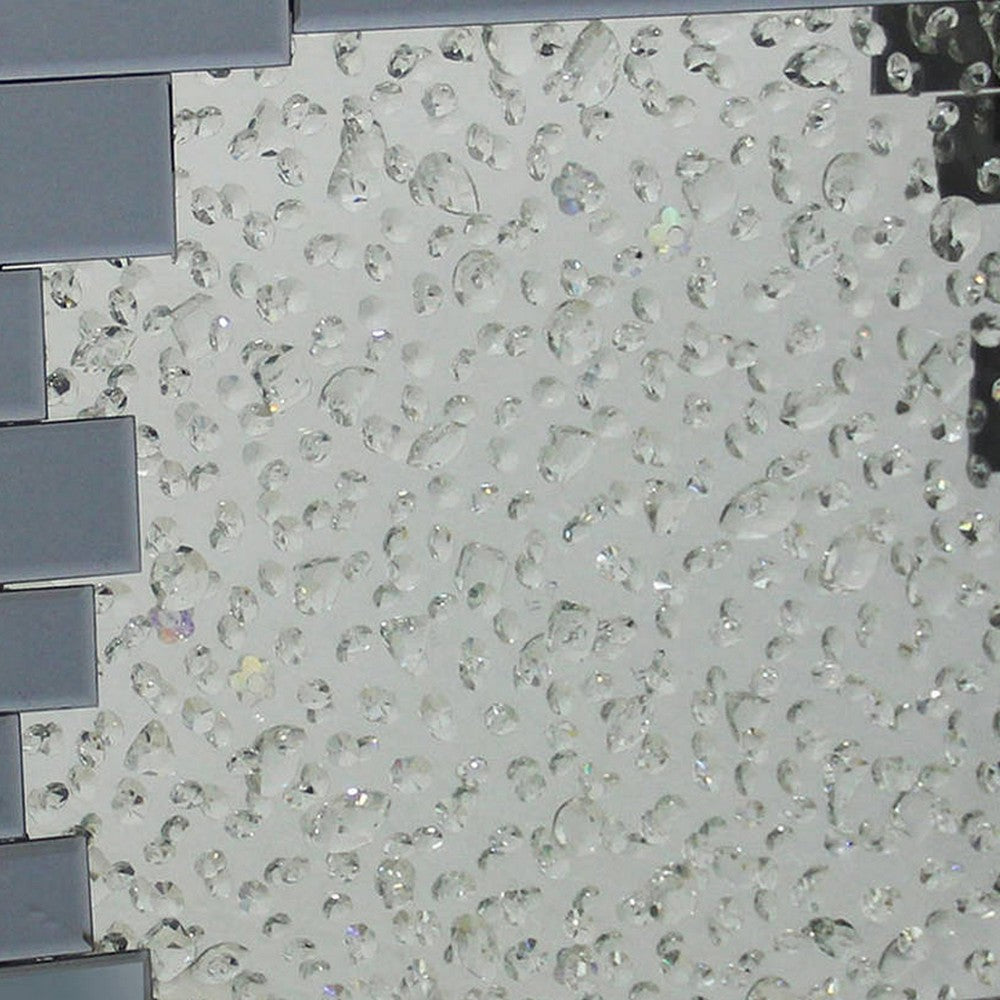 - Variant: 47.24 L x 13.98 W x 31.89 H Inches / Black and Clear / Mirror, Glass, Faux Crystals and Composite Wood