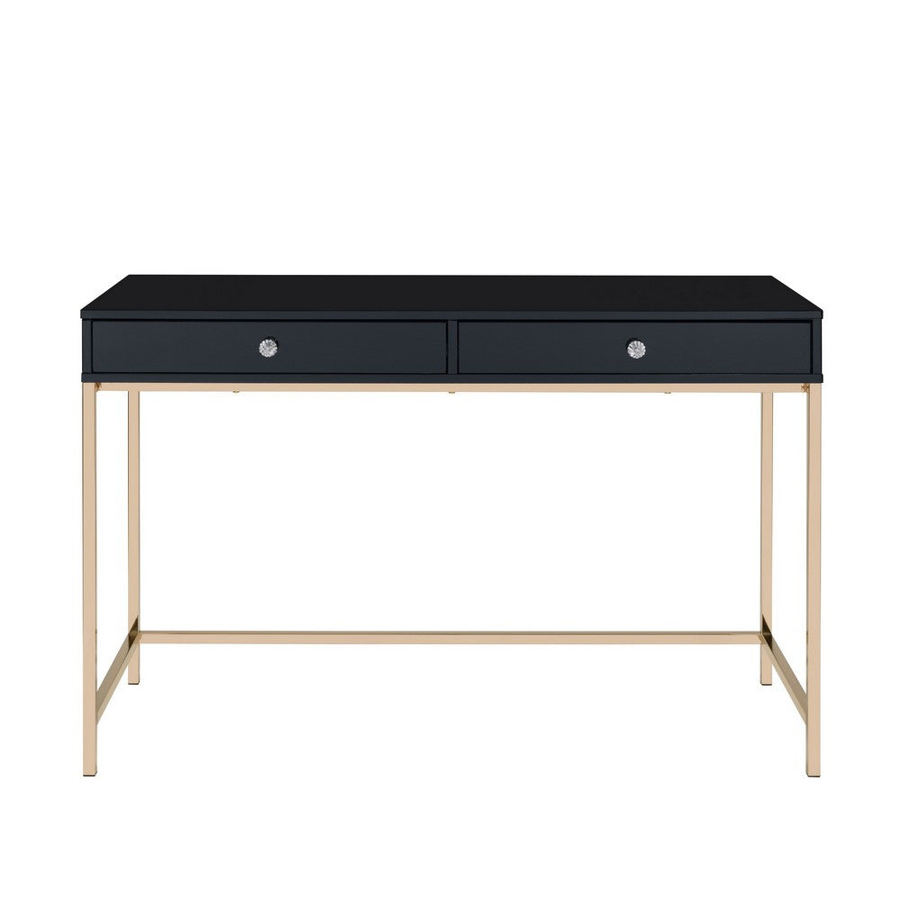 Writing Desk with 2 Storage Compartments, Black and Gold - BM251199
