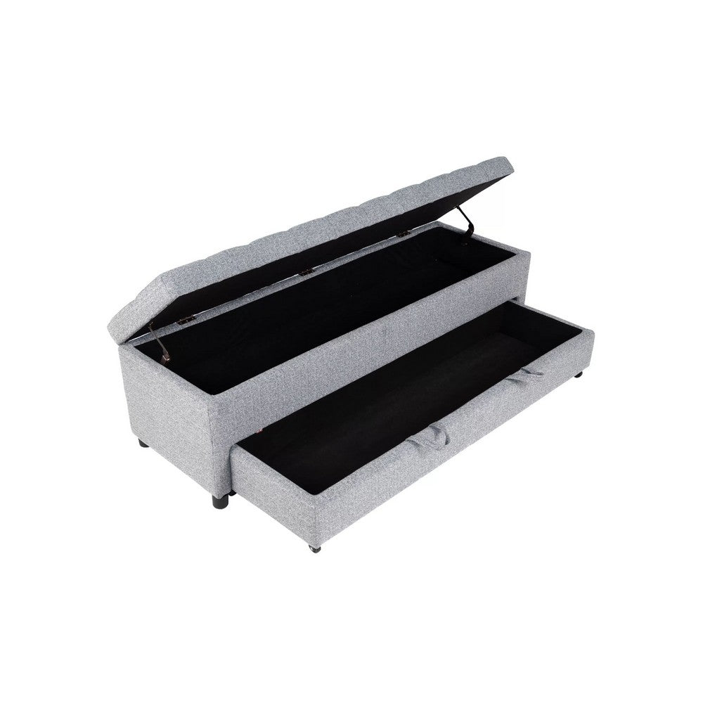 Kenny Ottoman, Underseat Drawer, Gray Button Tufted Boucle 60 Inch - BM341054
