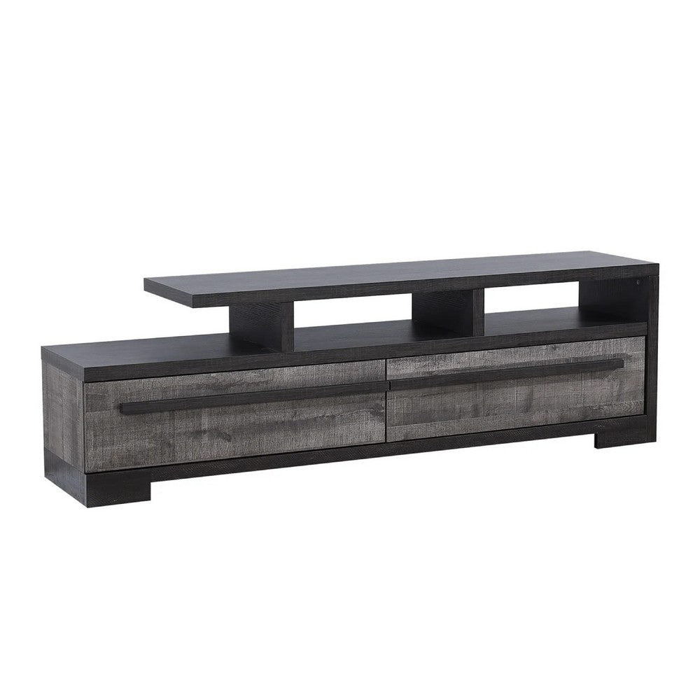 Ruthe TV Stand Media Console with 2 Drawers, Shelves, Black Gray Wood -BM338407