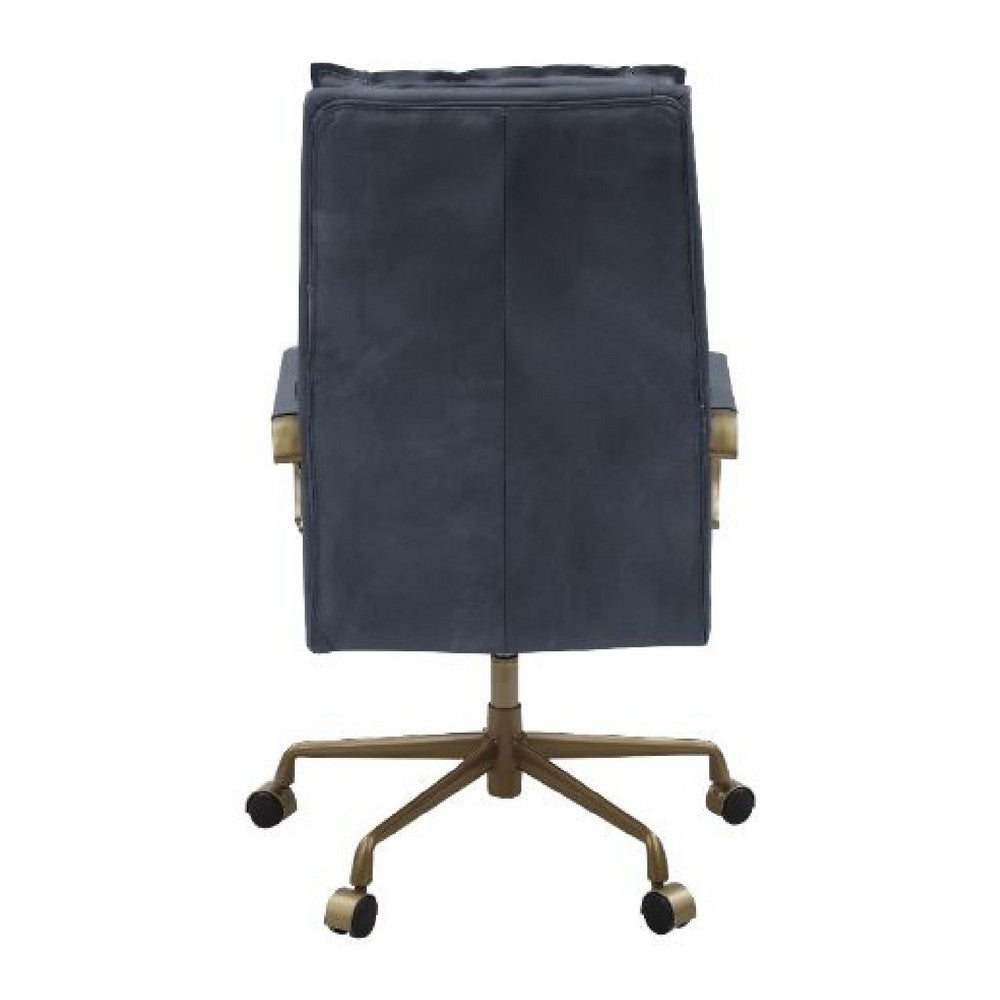 Accentuate your workspace with the introduction of this sophisticated and stylish Office Chair. Featuring padded seating with tufted details, it is constructed sturdily from the combination of plywood and metal. Upholstered with a gray tone top grain leather, the 5 star base with casters offer mobility and stability to it.