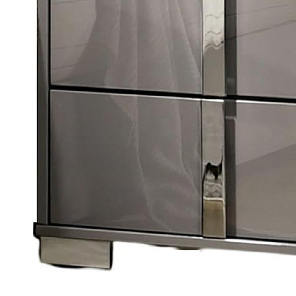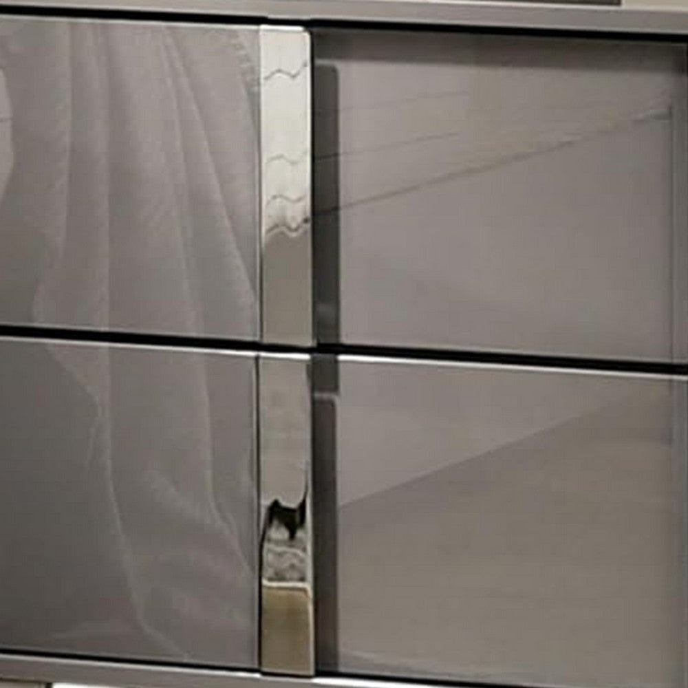 Elevate your modern space with this spacious and elegant nightstand, featuring a clean-lined profile and light taupe finish. Built from engineered wood with metal accents, it includes two drawers with vertical chrome handles and a smooth UV coating. Chrome bracket feet offer added stability and sleek style. Explore our Suni collection for more options.