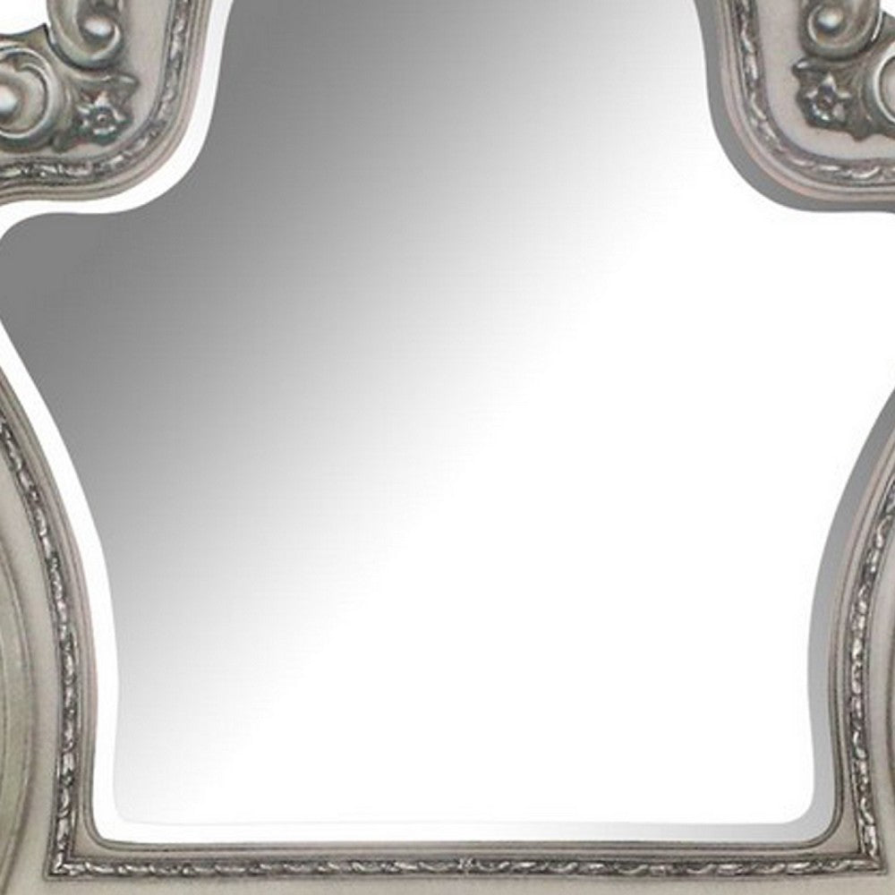 Arch Shape Wooden Frame Wall Mirror with Carved Details, Antique Silver - BM226925