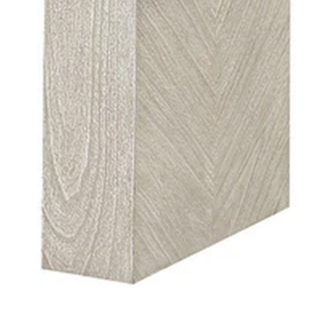 - Features a bold panel base with chevron-inspired wood grain pattern