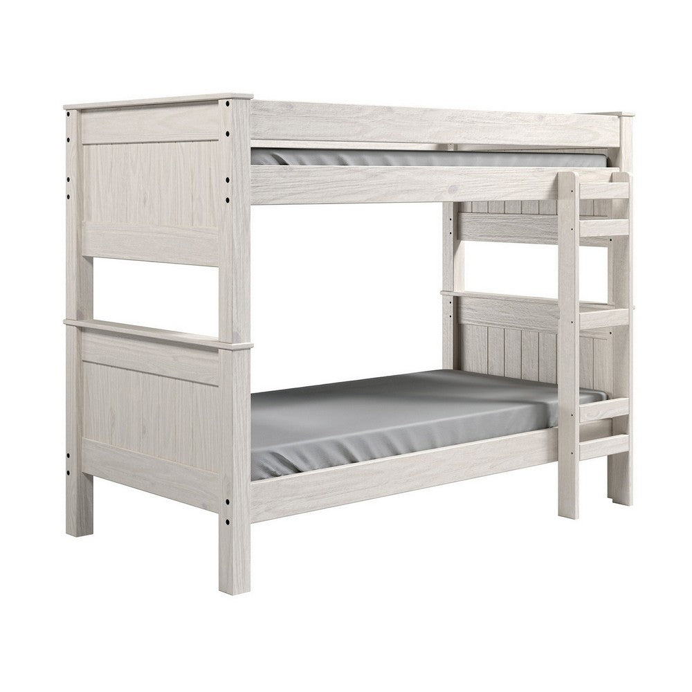 Twin/Twin Bunk Bed with Ladder, Brazilian Pine, Solid Wood, White - BM321092