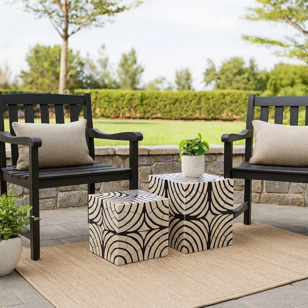 Stylish and symmetrical in design, this set of two storage boxes is perfect for keeping jewelry, trinkets, and other valuables organized for a clutter free space anywhere in your home. A premium quality wood frame with an artistic geometric design in a striking black and white finish gives a remarkable touch to this set, making it not only perfect for clutter but a phenomenal decoration in itself.